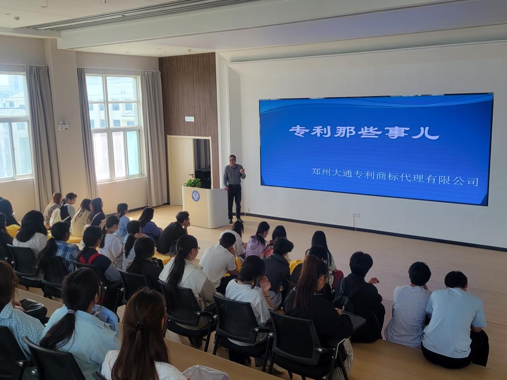 随后,我校师生在17号楼5楼路演大厅,听取了郑州大通专利商标代理有限公司张立强老师讲的知识产权讲座“专利那些事”。