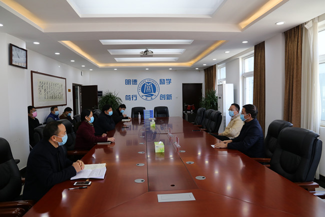 2月18日上午,市委常委、宣传部部长王载飞,市政府副秘书长王亚文到我校检查指导新冠肺炎疫情防控工作。校党委书记陈灿、校长宋志敏、副校长李治及学校疫情防控领导小组相关人员参加了会议。