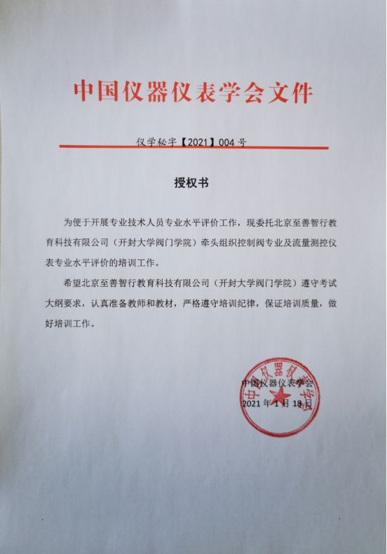 bat365在线官方网站阀门学院工程师水平评价培训中心获中国仪器仪表学会授权