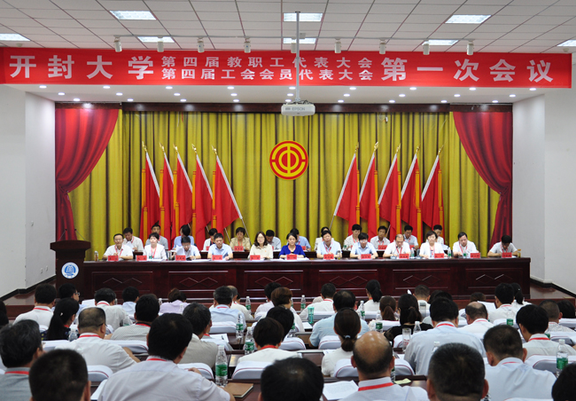 7月5日,bat365在线官方网站第四届教职工代表大会、第四届工会会员代表大会一次会议在我校行政楼一楼会议厅召开。开封市总工会党委委员、副主席张红,开封市总工会教科文卫体工会主席李汴军,开封文化艺术职业学院党委委员、工会主席王森到会表示祝贺。大会正式代表、特邀代表、列席代表参加了会议,大会由校党委副书记储建新主持。