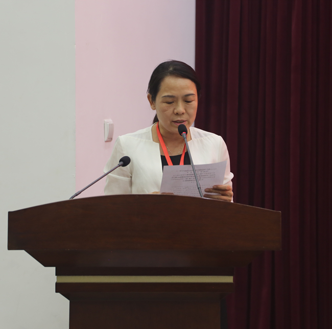 二团团长、校科研外事处处长吴玺玫宣读《替补第四届工会委员会(教代会执委会)委员的决定(草案)》
