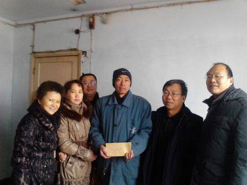 在栗洪照老师家中,成主席询问了栗老师的病情和生活状况,希望他保重身体,早日康复,并特地把从市总工会争取到的5000元大病救助金交到栗老师手中。