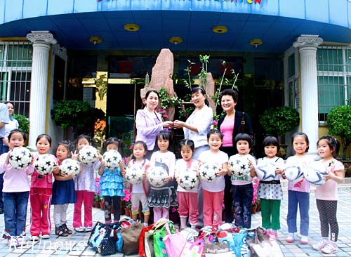 5月30日下午,在六一儿童节到来之前,校工会主席成芳,工会副主席刘凤英到共建单位金明幼儿园、世纪星幼儿园和康乐幼儿园,送去慰问金和礼品,并祝贺幼儿园的小朋友儿童节快乐。1