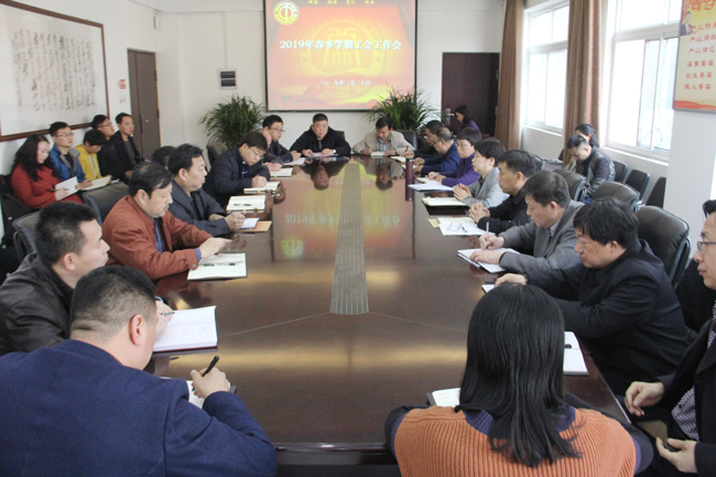 3月20日下午,我校在行政楼二楼会议室召开2019年春季学期工会工作会,校工会主席成芳出席会议,校工会委员会委员、全校各单位工会工作临时负责人参加了会议。会议由校工会主席成芳主持。