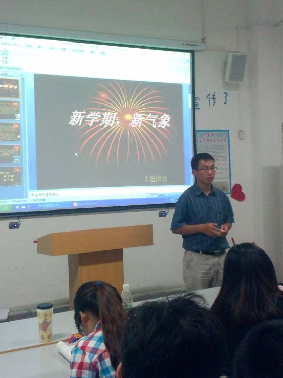 这次团会主题是“新学期,新气象”辅导员沈二波老师首先作了开篇讲话,询问了同学们新学期的上课情况,有无困恼。接着院学生会第一副书记张琦学姐向四班同学们表达了学长学姐们对于学弟学妹们的关爱,以及对于新学期的祝福。最后团支书卢秀秀给予班里的同学们新学期的问候,并希望新学期能够互相帮助,好好学习,共创美好班级。