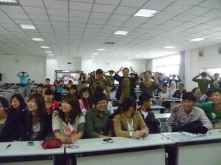 活动设置了许多趣味环节,包括提问外教、单词竞猜、知识抢答、正反话游戏、教唱英文歌、舞蹈互动等。活动中学生们不仅玩得开心,而且通过与外教交流同时学到了一些西方传统文化知识,也增进了师生感情,更重要的是学生们体会到了“快乐学习”的涵义。最后活动在学生与外教自由交谈中结束。大家一起度过了一个热闹而有意义的周末。