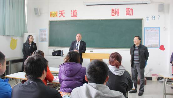 会谈后,Steven Wallis先生和蒲炎女士在李治院长的陪同下来到国际教育学院,与中英联合办学项目的学生见面并耐心细致地解答了学生们提出的问题。Steven Wallis先生表示双方具备合作办学的良好基础,希望两校能够更深层次地开展合作办学等项目,实现双方的共同发展。