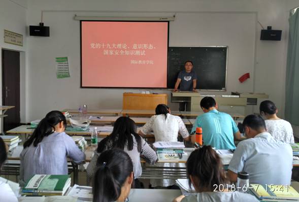 近期,国际教育学院党员师生开展了系列参观学习活动,为检验学习成效,6月7日下午,国际教育学院组织全体教师以及部分学生开展党的十九大理论、意识形态知识测试活动。