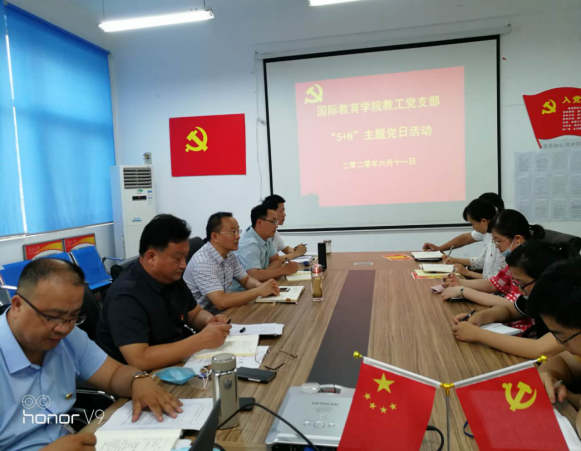 6月11日下午,国际教育学院教工党支部于开展了主题为“学两会精神、做四有教师”的“5+N”主题党日活动。党日活动由教工党支部书记蒋大山同志主持,校党委委员、副校长李治及学院全体党员教师参加。