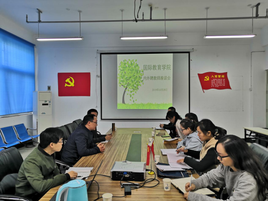 10月29日下午,国际教育学院在17号楼114会议室召开内外聘教师座谈会。院长袁长征、副院长蒋大山、教学秘书王赛以及本学期的内外聘教师参加了此次座谈会。