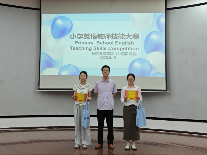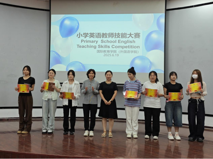 2025年6月19日下午,国际教育学院(外国语学院)小学英语教学技能大赛决赛在五号楼报告厅成功举办。院长蒋大山、党总支副书记秦新峰、副院长黄艺琴出席比赛,应用英语专业全体教师担任评委。