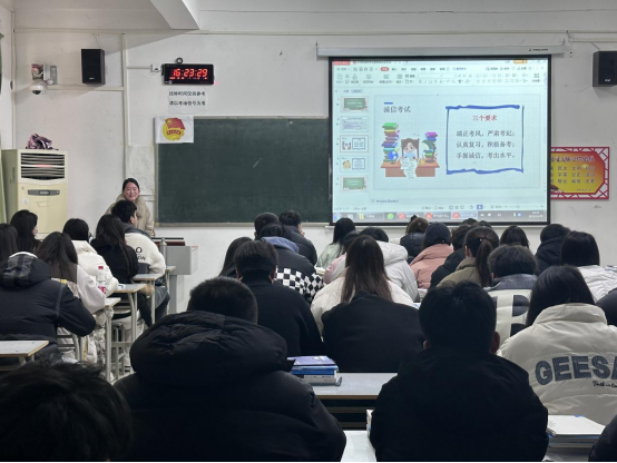 班会中各辅导员老师首先向同学们传达学习有关考试的规章制度,详细阐述考试过程中诚实守信、认真仔细、沉着冷静的重要性。随后结合往年考生违纪案例指出:考试可以为我们营造一个公平、公正、积极健康、有序和谐的竞争平台,只是检测所学知识的手段,是平时努力程度的集中反映,优异成绩要靠自己的真实智慧和辛勤奋斗来争取。因此大家要严守学校考试纪律,以严谨的考试作风,严明的考试纪律和良好的心态迎接期末考试的到来。