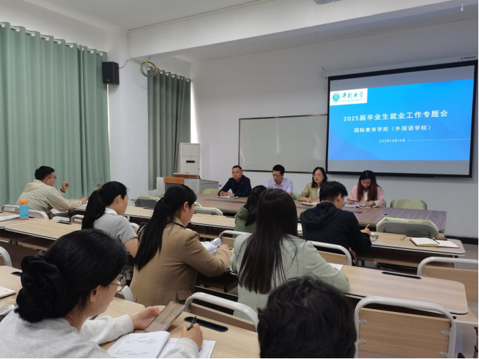 为深入贯彻教育部关于高校毕业生就业工作决策部署,5月9日下午,国际教育学院(外国语学院)在5#107会议室召开就业工作专题会。党总支书记程欣、院长蒋大山出席会议,各专业教研室主任、毕业班辅导员及实习指导教师代表共30人参会。