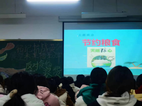 在班团会上,同学们通过PPT等形式,图文并茂地讲述“节约粮食”的相关知识。随后同学就世界粮食日的主题、全国粮食安全宣传周主题等几个方面进行了讲解,并延伸该如何节约粮、厉行勤俭节约的意识。最后,各班长向同学们提出倡议:珍惜粮食,避免剩餐,减少浪费;看到浪费现象勇敢制止。
