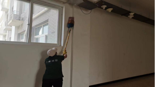 4、为保障教学楼细节卫生环境,对楼道进行拖洗、除尘、清理蜘蛛网;