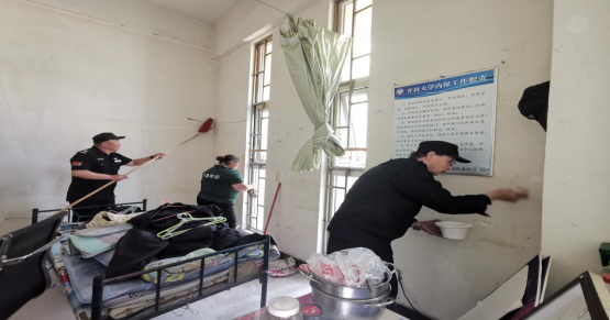 为营造干净整洁的工作环境,规范门卫值班室物品摆放标准和环境卫生清洁,5月7日后勤卫健办组织工作人员对各教学楼的值班室进行整治,做到物品摆放整齐有序,工作环境焕然一新。