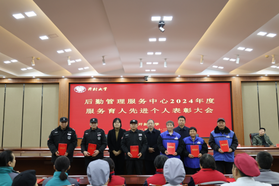 首先,成诤磊宣读表彰决定。为选树一批服务育人先进典型,激励后勤全体从业人员干事创业的工作热情,对本年度在服务育人工作中表现突出的个人给予表彰并颁发荣誉证书。本次表彰学生宿舍服务育人先进个人9人,校园环境服务育人先进个人6人,学生餐厅优质服务窗口10个。