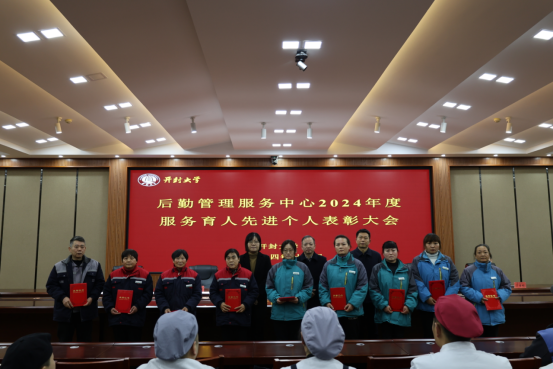 12月27日上午,后勤管理服务中心2024年度服务育人先进个人表彰大会在行政楼第二会议厅举行。副校长曾小平出席会议,学生工作部、后勤管理服务中心负责同志、受表彰职工及部分职工代表参加会议。会议由后勤管理服务中心主任徐纪珂主持。