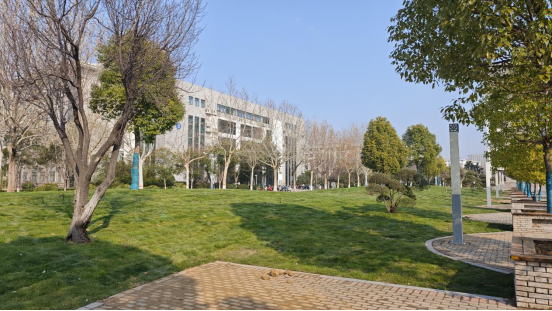 17号楼(京东乡村振兴产业学院)周边亦是旧貌换新颜,铺种果岭草草坪,大大提升了周边景观效果。