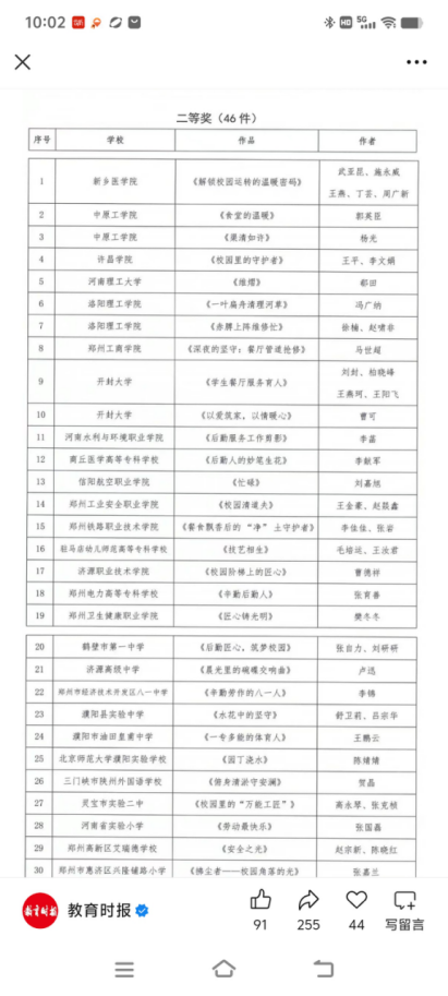 近日,河南省教育后勤协会公布了全省教育系统“服务育人看后勤”随手拍获奖结果。由于我校组织工作突出,成绩显著,学校获评“优秀组织奖”;我校参赛作品《学生餐厅服务育人》、《以爱筑家,以情暖心》获得二等奖,《背影》、《记录开大后勤人》、《以实践激发奋斗精神》获得三等奖。