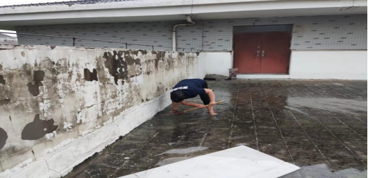 1、工作人员巡查、清理校园雨水井、楼宇天面排水口杂物;
