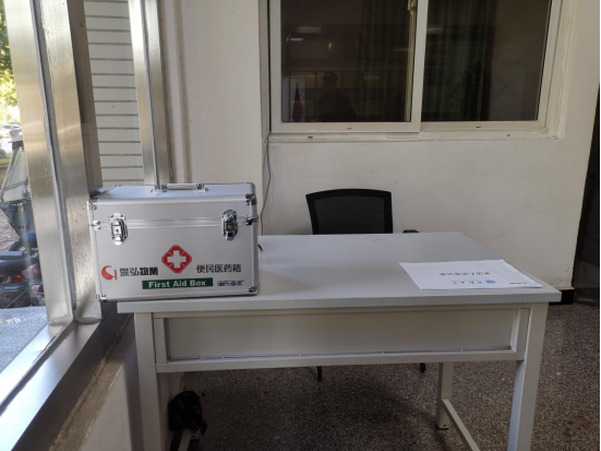 医疗箱配备基础应急药品,可应对轻微擦伤等突发状况;提示牌放置于卫生间、楼梯口等湿滑区域,醒目提醒,有效预防滑倒事故。此举旨在营造更安全、便捷、人性化的教学环境,是后勤服务精细化、人文化的具体体现。