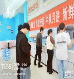 活动现场,餐厅门口早早搭建起温馨的赠礼专区,工作人员提前准备好月饼与时令水果,一份份“中秋礼包”摆放整齐。师生们有序排队领取,领取月饼水果时的笑容与道谢声交织,不少学生表示:“没想到在学校也能收到中秋节礼物,感觉特别温暖贴心。”