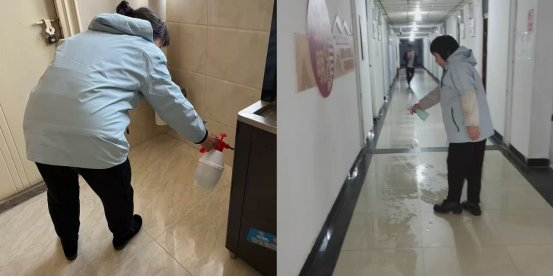 近日换季气温波动,为防范病菌滋生繁衍,提升学生住宿生活质量,宿舍管理部门组织工作人员开展楼内外全覆盖消杀专项行动。