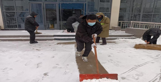 2、工作人员清理校园道路积雪;