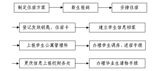 1.学生按程序办理报到手续后,凭财务收据和公寓分配卡,到学生公寓值班室领取房间钥匙。