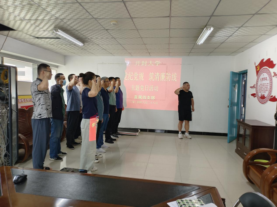 为深入推进党纪学习教育,不断增强党员干部遵纪守法和廉洁自律意识,筑牢拒腐防变思想防线,结合典型案例开展以案促改,6月28日9:00,直属四支部开展了“学党纪党规 筑清廉防线”为主题的“5+N”主题党日活动。活动由支部书记成诤磊同志主持,支部在校的13名党员参加了活动。
