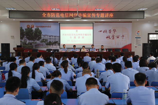 本站讯 5月28日上午,由开封市公安局主办、bat365在线官方网站承办的“市防范电信网络诈骗专项培训会”在我校土木学院六楼报告厅召开。我校工会主席成芳、开封市电信诈骗犯罪侦查支队支队长海洋、治安管理支队副支队长王剑出席了此次培训会。城区各治安大队大队长、派出所基础副所长、反诈民警、社区民警代表、市县两级反诈宣讲团成员,驻汴高校代表及我校学生工作队伍、保卫处全体人员参加了此次培训。