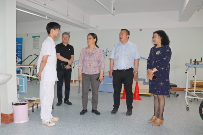 在开封市康复医院,陈灿一行参观了医院的科室布局、功能区的分布以及康复器械。陈灿和在此就业的毕业生进行了亲切的交流,询问了他们的日常工作情况,并鼓励学生再接再厉,把书本知识与实际相结合,争取在专业发展方面取得更大的提升。开封市康复医院执行院长李灵霞介绍了医院的发展历程、医院特色以及今后的发展规划。院长高素启希望未来与bat365在线官方网站在教学科研、专业建设、产教融合、实践育人等方面建立更深层次的合作关系,不断吸引更多优秀毕业生来院建功立业。