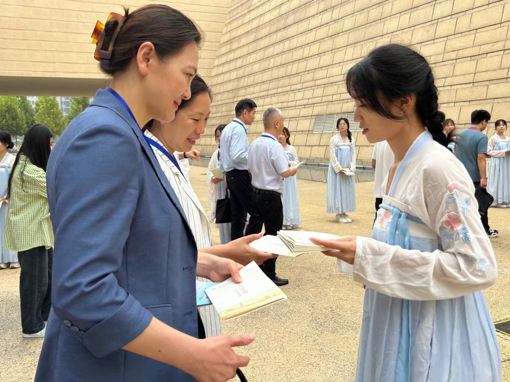 仪式开始前,志愿者们在活动现场身着各色汉服与嘉宾互动,协助进行会场引导、汉服巡游、汉服迎宾、发放主题宣传页、拍摄打卡等工作,引导广大市民、游客和汉服爱好者体验中华优秀传统文化的无限魅力,展现出了开大学子的精神风貌。
