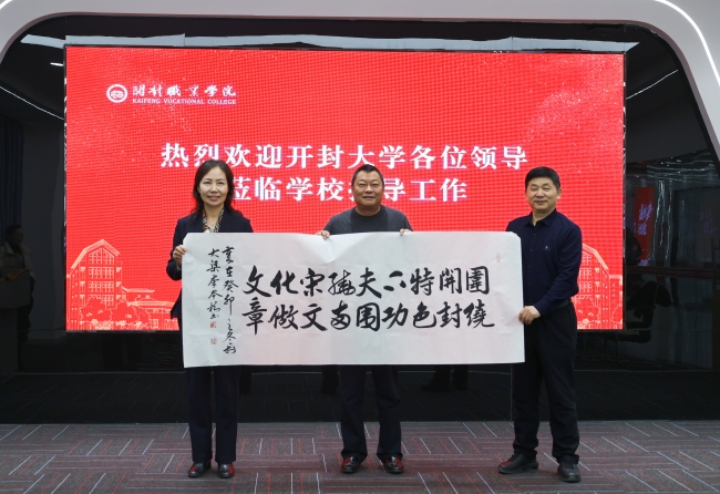 最后,谭贞、王德如为开封职业学院赠送书法作品,表达bat365在线官方网站对开封职业学院美好未来的祝福。
