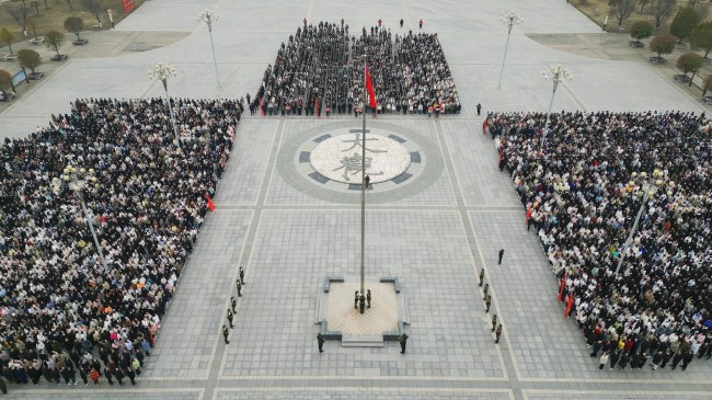 国旗护卫队从校党委书记谭贞手中接过国旗