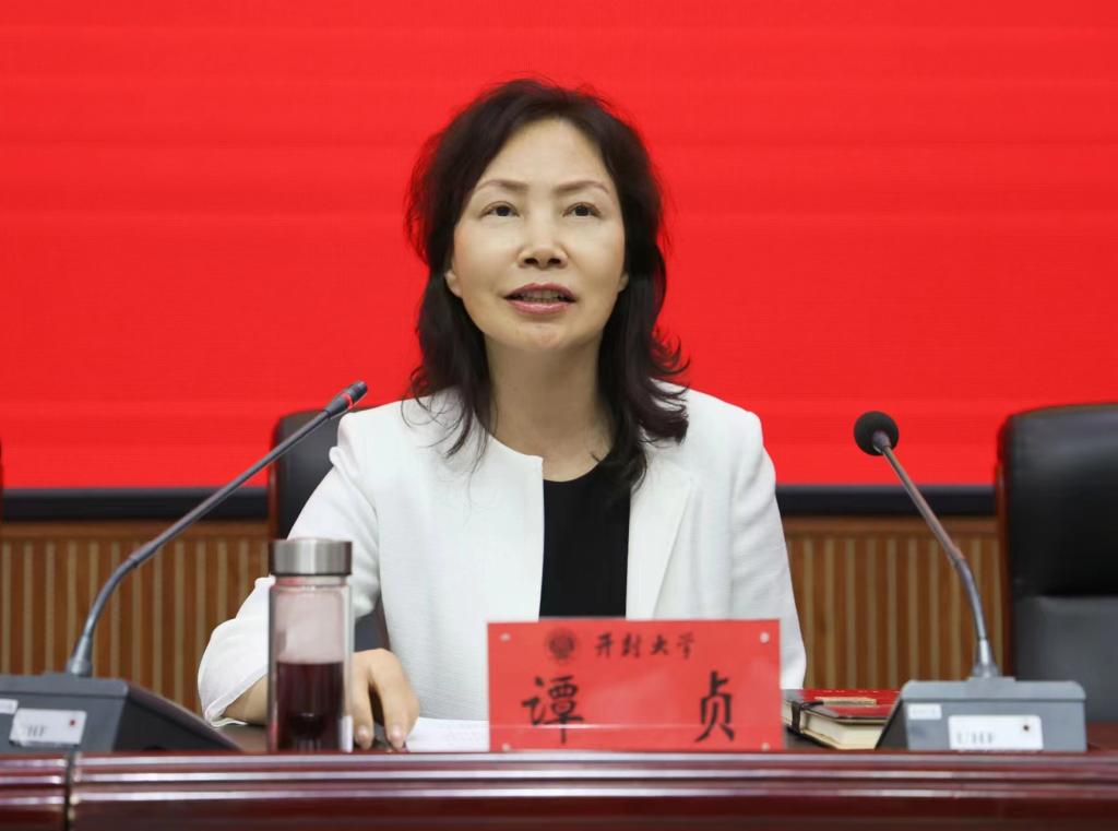 谭贞代表学校党委向受表彰的单位和个人表示衷心的祝贺,希望受到表彰的老师和同学充分发挥榜样示范作用,在今后的工作中以实际行动为我校“双高”建设和提升办学层次贡献自己的力量。她向全体师生提出三点要求:一是鼓励同学们要志存高远,争做新时代好青年;二是要求老师要立德树人,争做新时代的“四有”好老师;三是相关职能部门要强化服务,为广大师生搭建平台,要紧紧围绕立德树人根本任务,主动策划、多措并举,组织有特色、有意义的活动。谭贞强调,要以此次“两创两争”活动暨体育文化节表彰为契机,积极营造学校体育发展的良好环境,全面加强新时代师德师风建设,带动形成优良的校风、教风、学风。为全面提升人才培养质量,为办好人民满意的教育而努力奋斗。