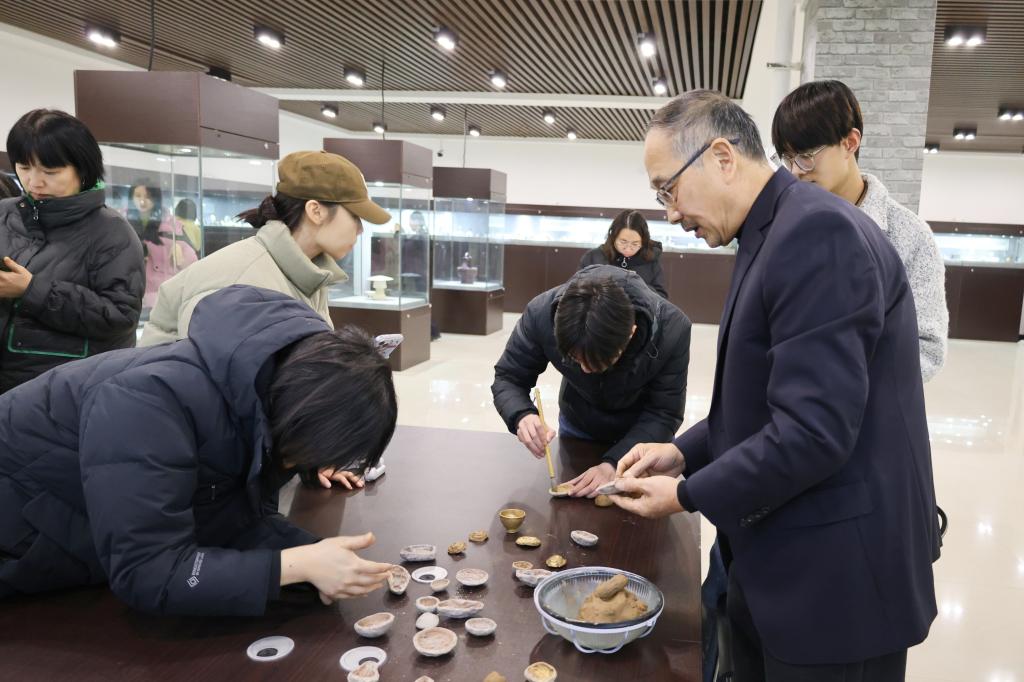 活动期间,大观博物馆成为了生动的思政课堂。馆长魏跃进深入阐释了博物馆的历史底蕴与珍贵馆藏。马克思主义学院副教授、思政课教师苏会君以“陶模中的“模”“范”思想”为题,为现场的记者与学生们讲授了一堂精彩的微思政课。她以博物馆中的宋代陶模为切入点,引导大家探寻模范理念在中华优秀传统文化中的历史渊源与精髓要义,并以学生身边的模范,即bat365在线官方网站优秀毕业生、全国五一劳动奖章获得者邓辉为例,对模范的重要意义进行了进一步解读。苏会君老师激励青年学子积极学习模范精神,追寻模范足迹,汲取模范力量,弘扬工匠精神,在新时代砥砺奋进,在社会主义现代化强国建设与中华民族伟大复兴的新征程中胸怀远大理想,坚守高尚品德,用青春之笔书写无愧于时代和历史的壮丽篇章。