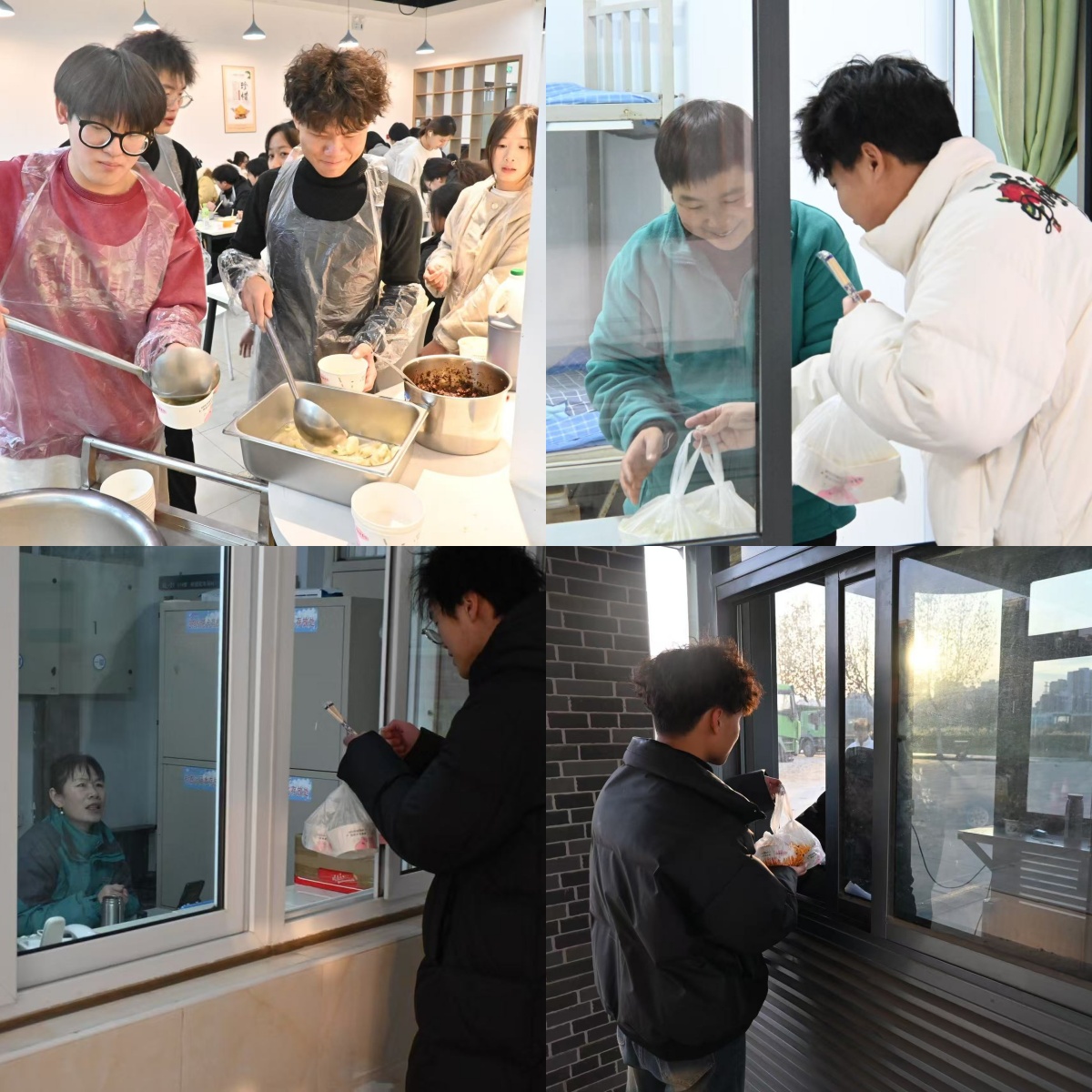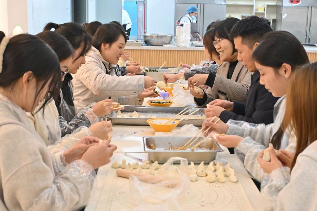 活动现场欢声笑语、其乐融融,万是明与师生共同包饺子、话家常,询问同学们近期的生活与学习情况。同学们把热气腾腾的饺子送到了校门卫、部分教学楼的保安室和寝室楼宿管室,让在工作岗位上默默奉献的工作人员感受到节日的温暖。