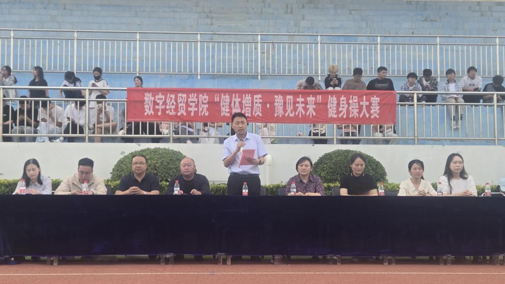 本站讯 5月15日下午,我校在北操场举办“健体增质 豫见未来”健身操大赛。校党委副书记张合参加活动并讲话。