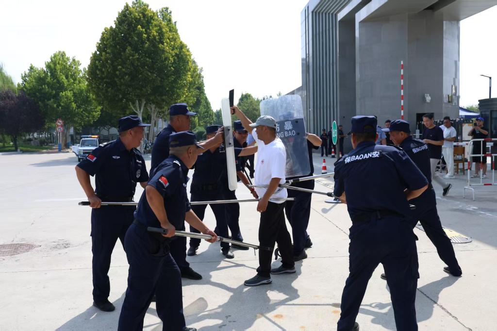 培训由龙亭区公安分局警训教官王斌指导,他结合实际案例讲解当前反恐形势、校园安全风险,帮助队员们深刻认识反恐工作的重要性和与紧迫性。实操演练环节,王斌教官详细演示各类反恐防暴装备的使用方法,并强调使用过程中的安全注意事项,队员们通过实操练习熟练掌握操作技巧。模拟演练现场,巡逻组、应急处置组展现出安保队伍高效的应急反应能力。