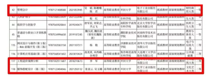 其中,吴娟教授主编的《管理会计》获一等奖、张富云教授主编的《服饰搭配设计》和李军教授主编的《工程造价案例分析》分别荣获二等奖;同时,吴娟教授主编的《管理会计》教材被河南省教育厅推荐参评第二届全国教材建设奖(职业教育与继续教育类)全国优秀教材。