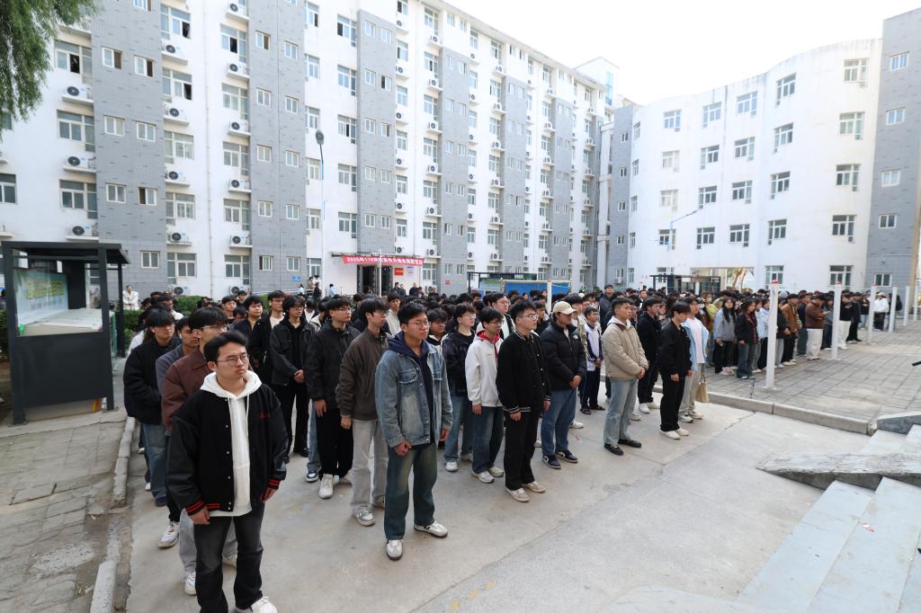 本站讯 为贯彻落实河南省消防安全委员会《关于印发2025年河南省119消防宣传月活动方案的通知》精神,增强师生消防安全意识,提升消防安全事故防范与应急处置技能。11月13日下午,我校在7、8号宿舍楼前开展消防安全知识培训及疏散逃生演练。副校长院继恒参加活动并讲话。