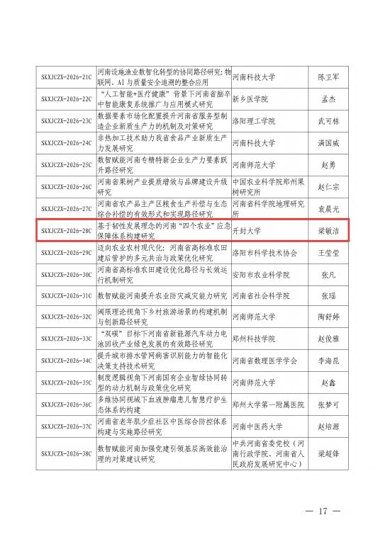 本站讯 近日,河南省科学技术协会公布2026年度科技决策咨询研究课题立项名单,我校2项课题历经教师自主申报、学校择优推荐、专家评审、省科协复审及社会公示等多轮严格遴选,成功获批立项。这是我校教师首次在该类课题中实现突破,标志着学校在科技决策咨询研究领域的科研实力获得省级权威认可。
