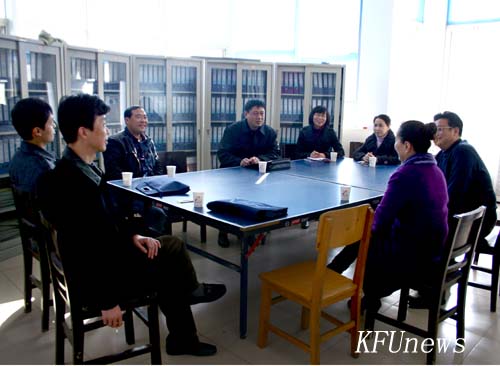本站讯 2011年3月16日下午,市委创先争优活动督导组组长、禹王台区正县级干部鲁守玉,成员市委组织部副县级调研员李刚、市财政局干部史东岳一行3人莅临我校,对我校的创先争优活动进行督导,重点检查和了解了我校创先争优活动中党组织和党员2011年度的公开承诺工作组织开展的情况。