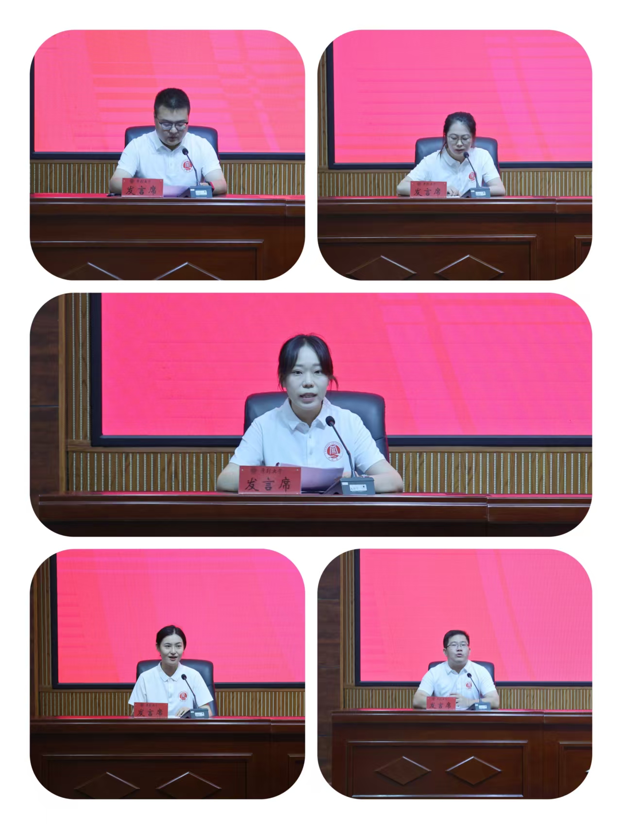 与会领导为参训学员颁发了结业证书,五位小组代表刘霄晗、雷文杰、王妍、张雷勇、陈钇彤依次作交流发言,分享学思践悟的收获,传递深耕育人工作的决心。
