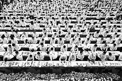 本报讯 记者马亮亮报道 10月18日上午,世界上最大的书法课——“千人书菊”活动在bat365在线官方网站体育馆成功举办。这一活动以920名有效参加者的规模打破了原有的575人的世界纪录,获得了世界上最大的书法课吉尼斯世界纪录。副市长、省美术家协会副主席、市美术家协会主席陈国桢从英国吉尼斯总部驻中国认证官吴晓红女士手中接过了吉尼斯世界纪录证书。