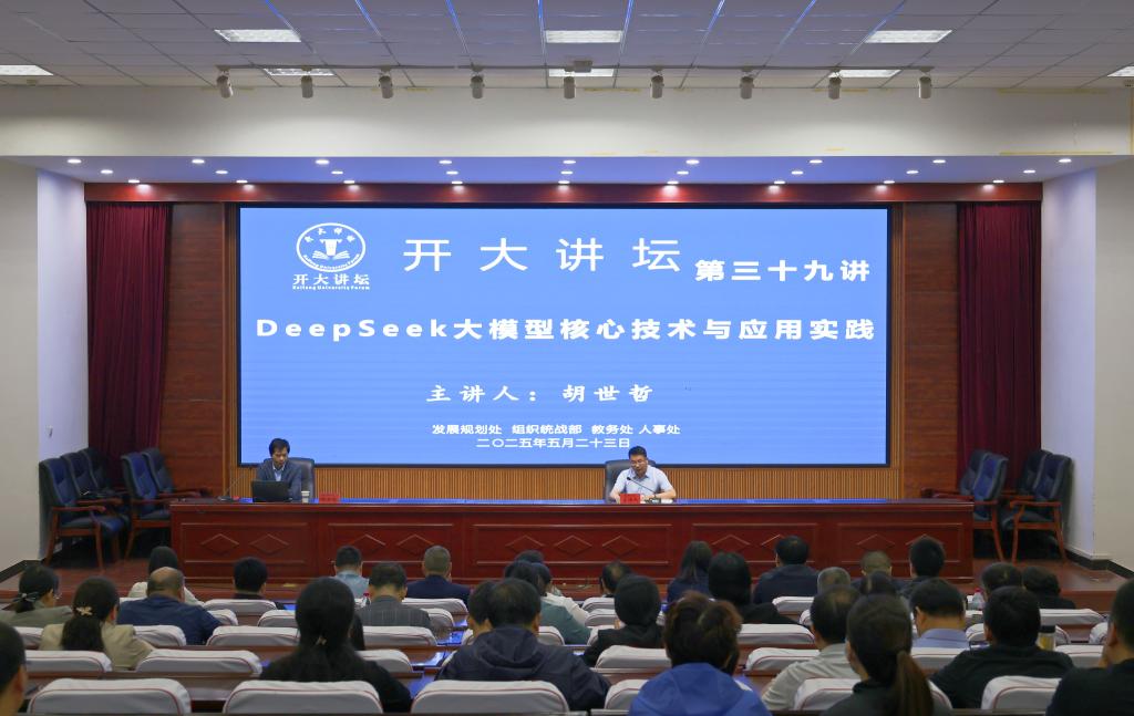 5月23日上午,“开大讲坛”系列报告第三十九讲《DeepSeek大模型核心技术与应用实践》在行政楼第一会议厅举行。此次讲座特邀郑州大学计算机与人工智能学院教授胡世哲博士主讲。校领导班子成员出席讲座。讲座由发展规划处处长叶飞主持。