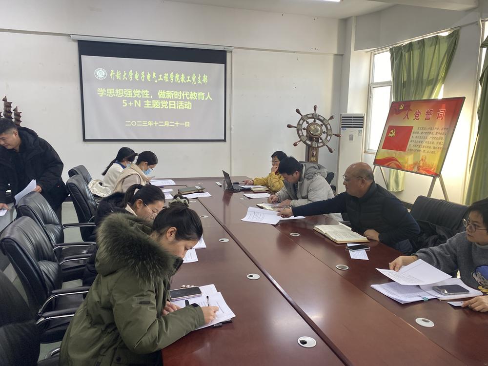 本站迅为深入学习贯彻习近平新时代中国特色社会主义思想,进一步增强党员教师的党性修养,提升党员的履职水平,电子电气工程学院教工党支部以“学思想强党性,做新时代教育人”为主题,于12月21日开展5+N党日活动,全体教职工党员参加,活动由学院教工支部书记杜诗超主持。