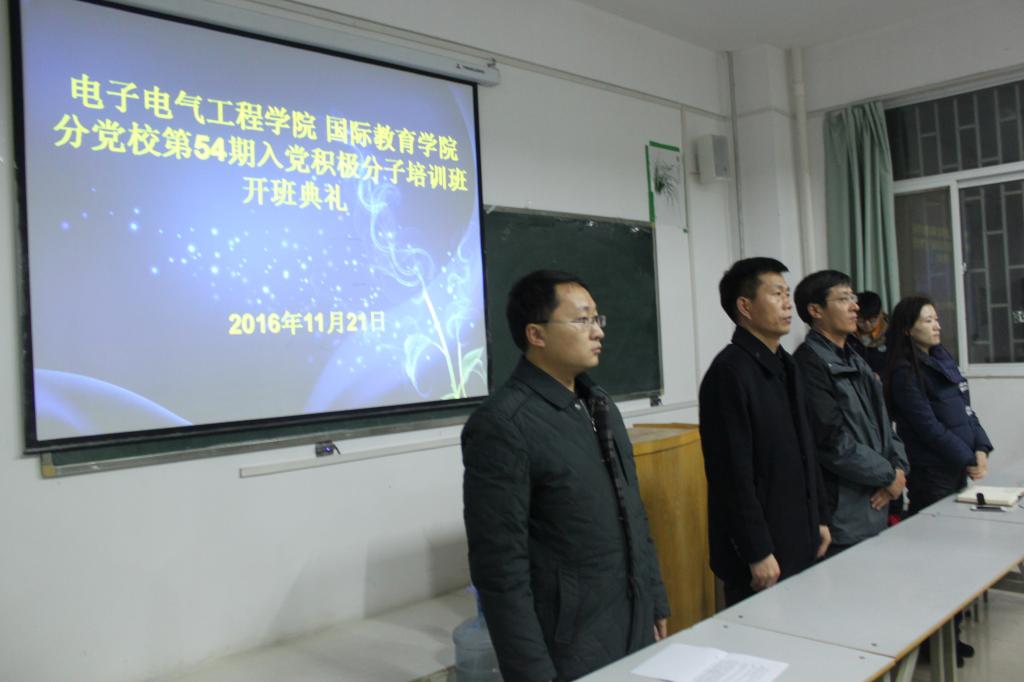 11月21日晚,电子电气工程学院和国际教育学院第五十四期业余党校开班仪式在国际教育学院教学楼1106教室顺利举行。会议由电子电气工程学院党总支副书记边疆主持,电子电气工程学院党总支书记徐纪珂,国际教育学院党总支书记王玉杰,党总支副书记吴文静,团总支书记刘青,电子电气工程学院团总支书记王笑禹出席了会议。